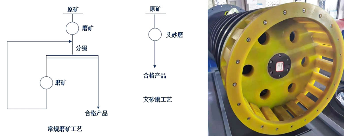 艾砂磨機功率密度300kw/m3;球磨、塔磨機功率密度僅20kw/m3;
