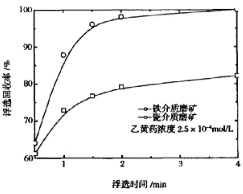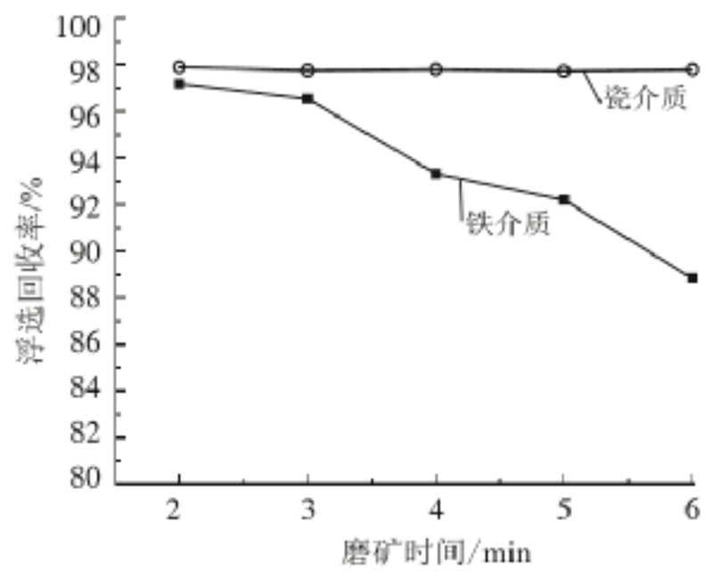 不同磨礦介質(zhì)、磨礦時間對浮選回收率的影響