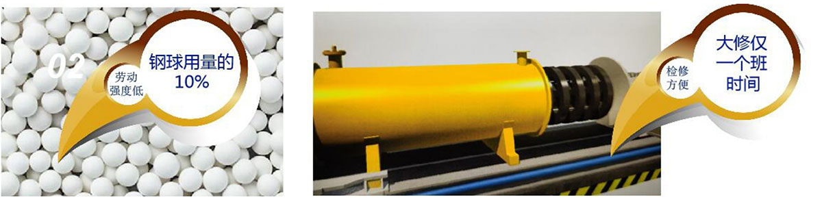 相同處理量,艾砂磨筒體體積不到球磨機的20%,占地面積小。