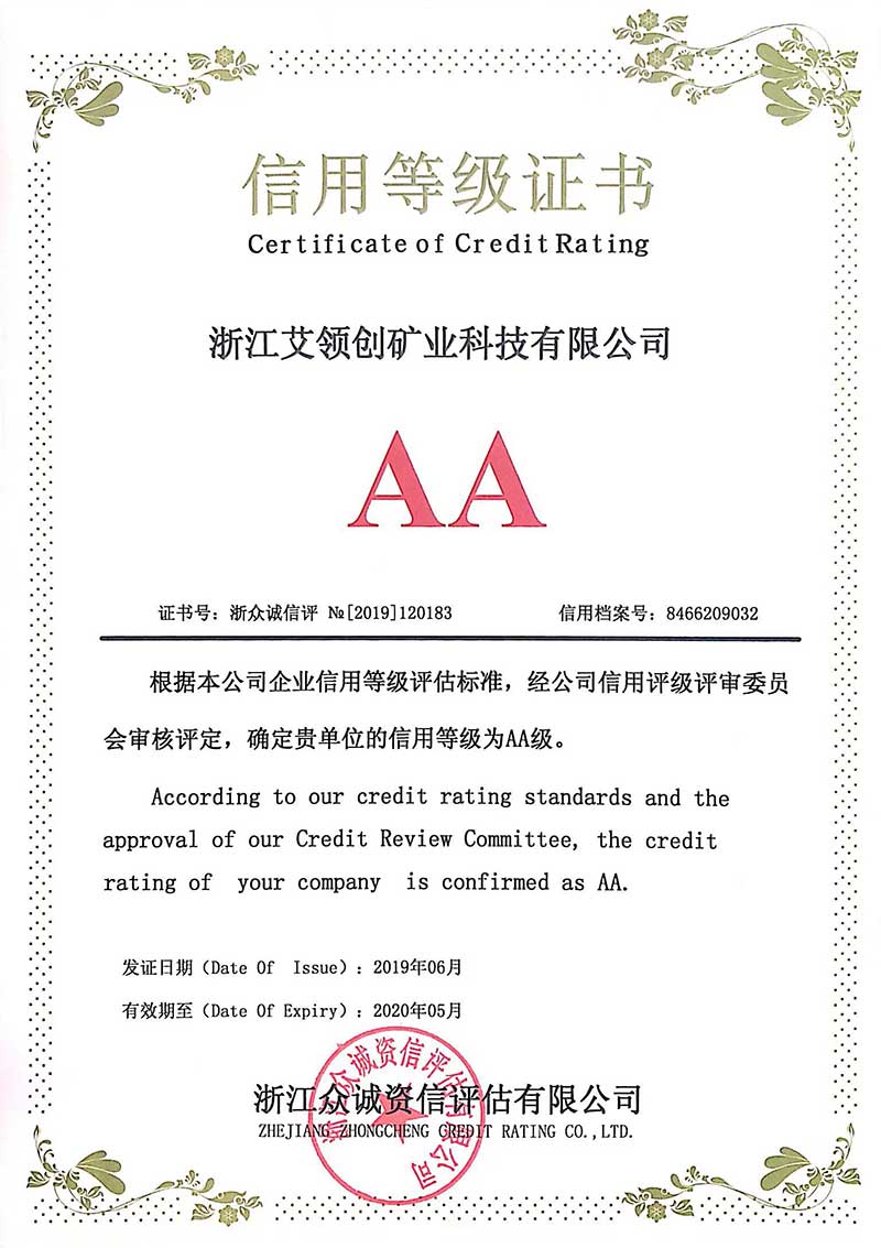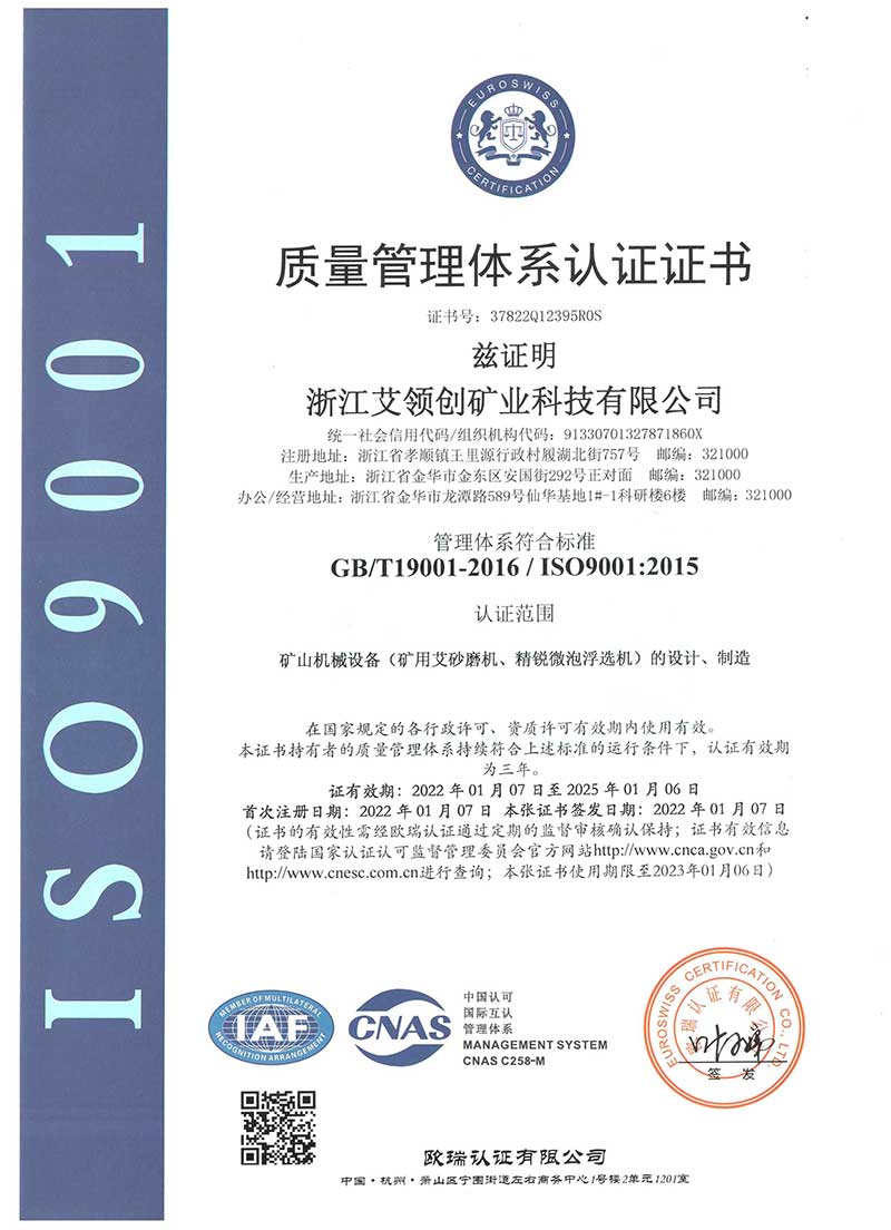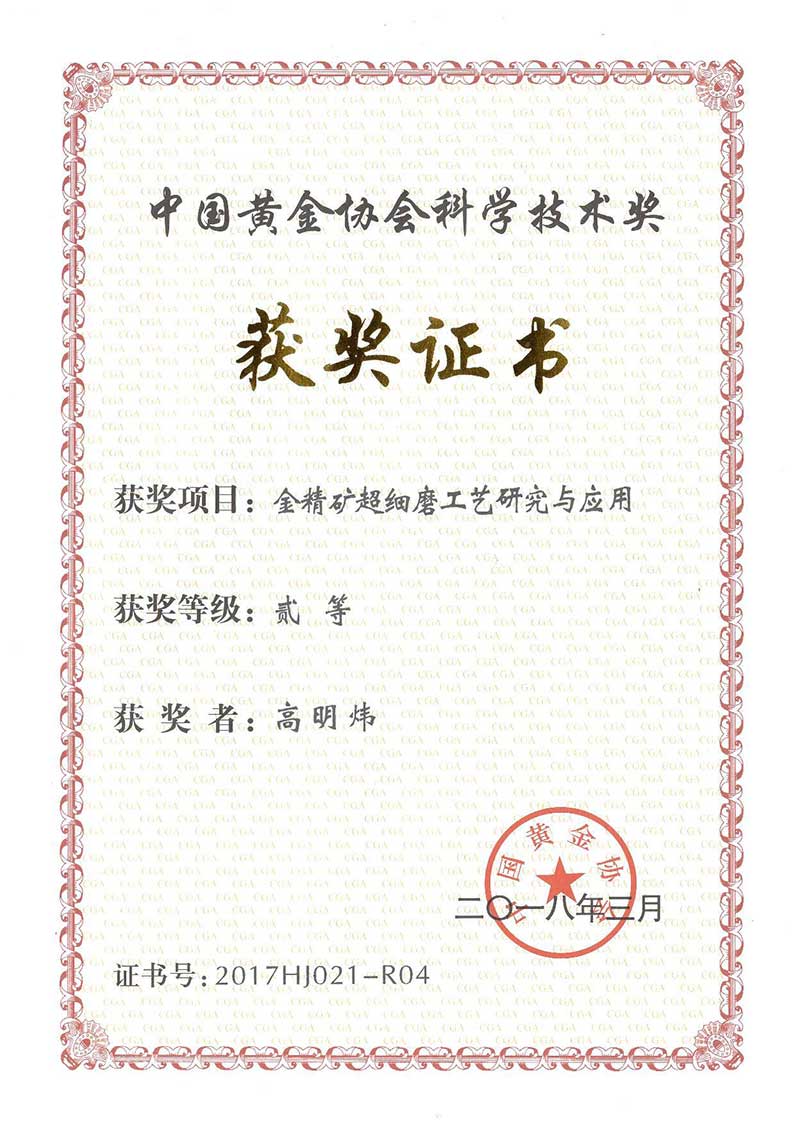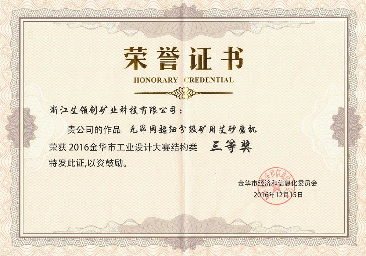有色金屬礦山設(shè)備產(chǎn)品級別評定證書-艾砂磨機(jī)