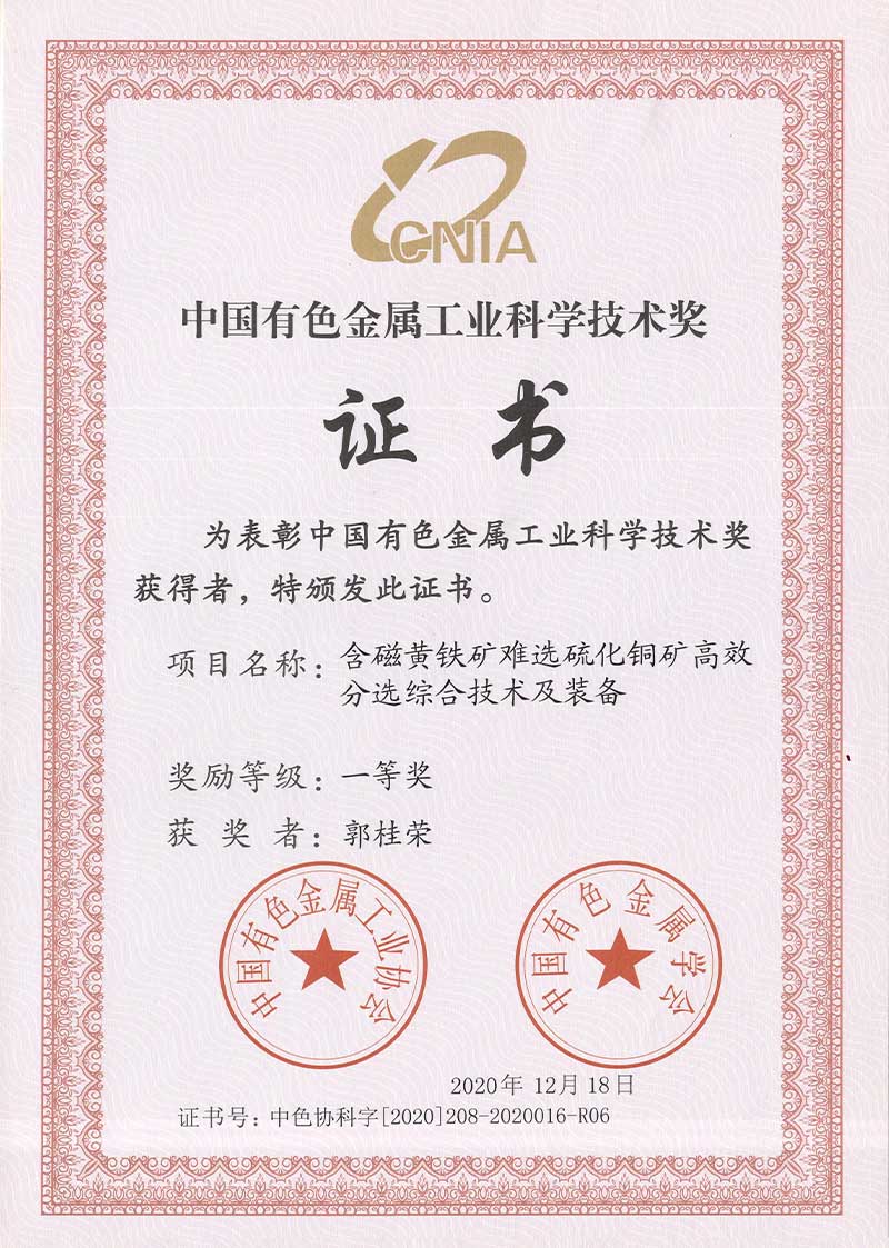 中國有色金屬工業(yè)科學(xué)技術(shù)獎(jiǎng)個(gè)人一等獎(jiǎng)-郭桂榮