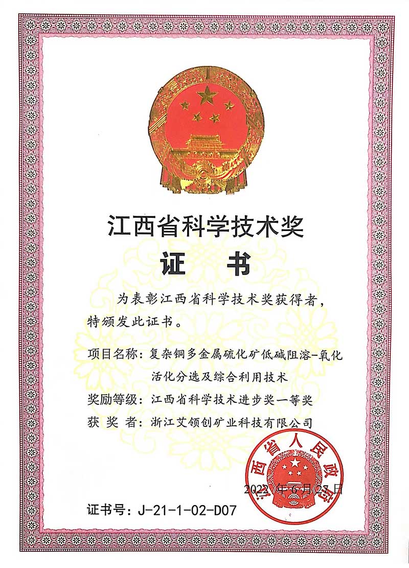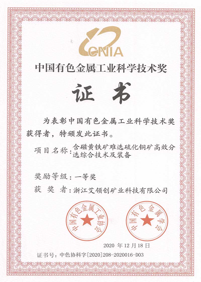 中國有色金屬工業(yè)科學(xué)技術(shù)獎(jiǎng)一等獎(jiǎng)