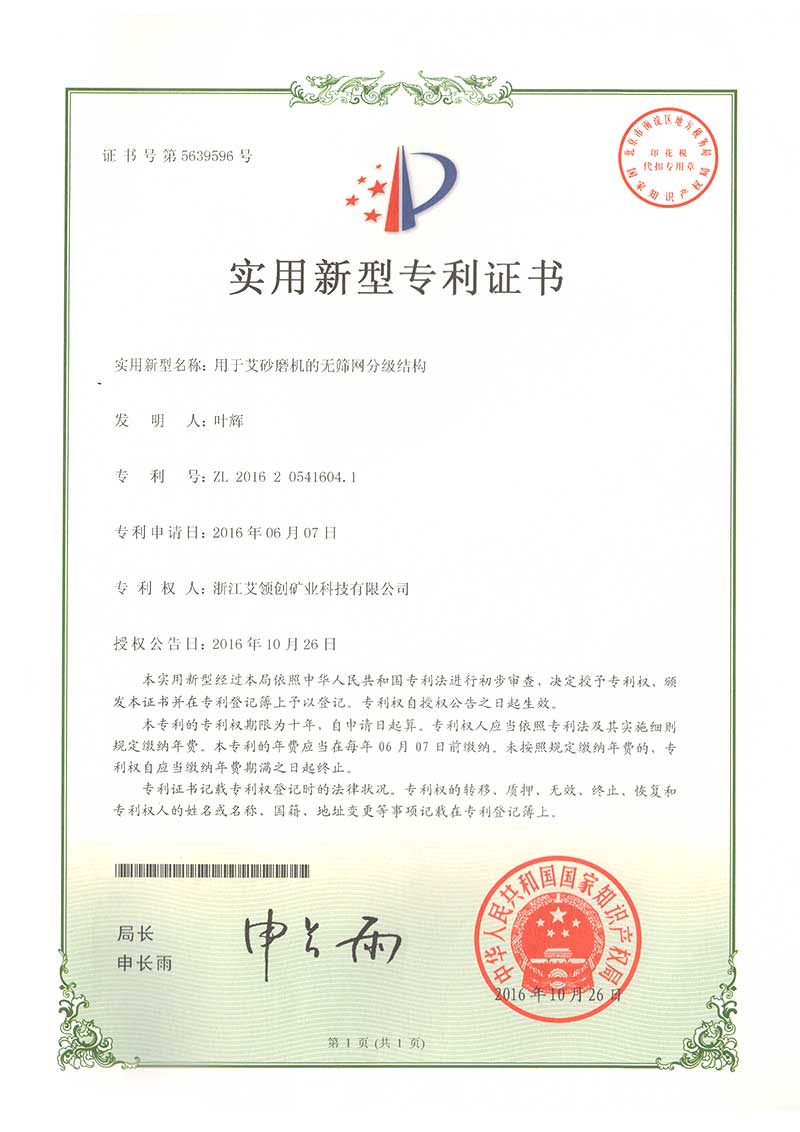 用于艾砂磨機(jī)的無篩網(wǎng)分級(jí)結(jié)構(gòu)